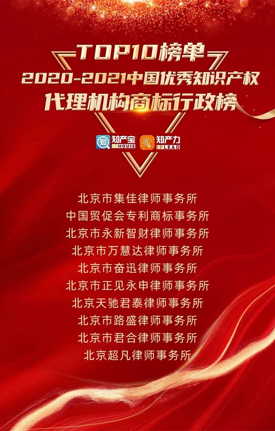 近日,备受业界关注的“2020-2021中国优秀知识产权代理机构榜”正式揭晓,raybet凭借长期以来在知识产权领域的卓越业绩和处理疑难案件的突出能力,从400余家知识产权代理机构中脱颖而出,荣登“中国优秀知识产权代理机构商标行政榜TOP10”。