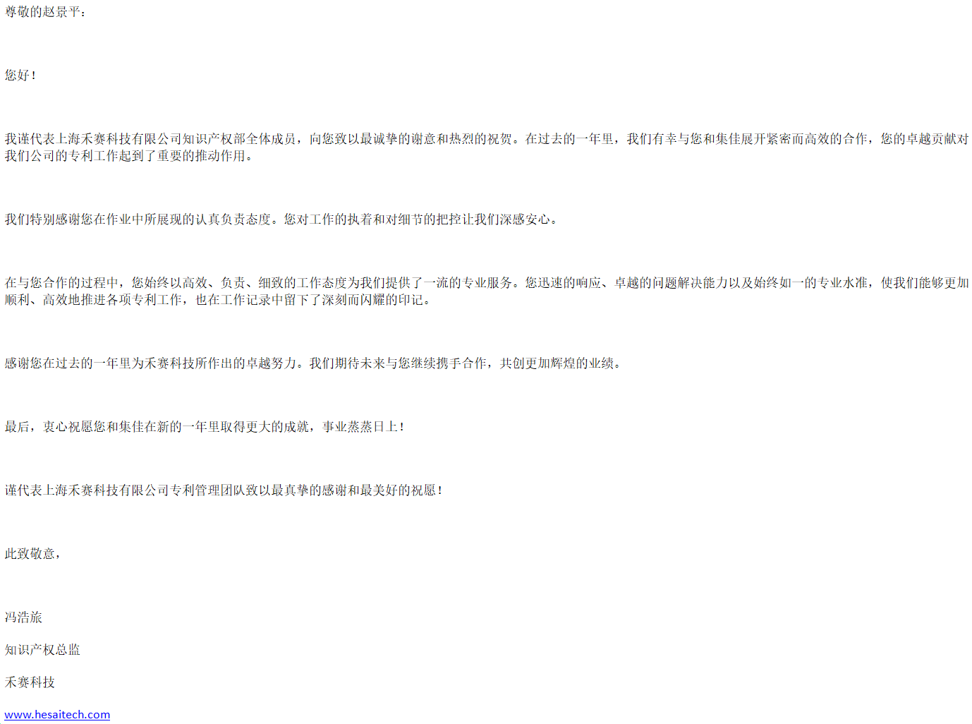 新年伊始,集佳喜获来自客户上海禾赛科技有限公司的感谢信,对raybet上海分所提供的优质服务表示感谢。